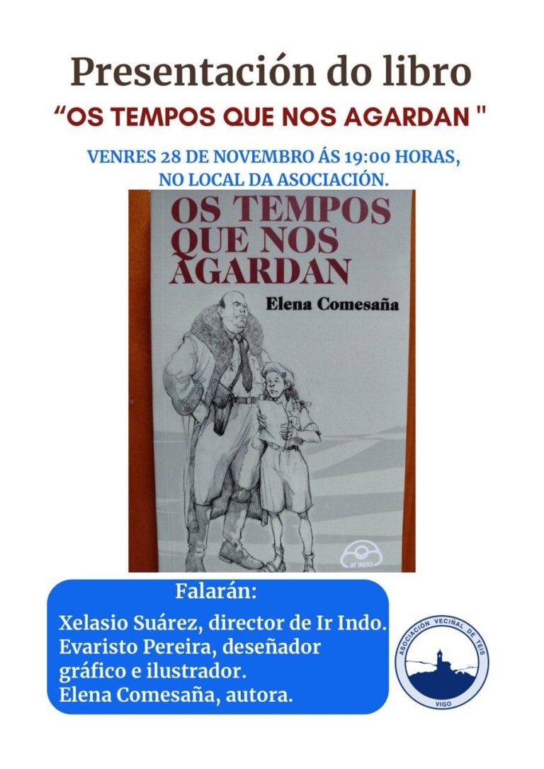 A Asociación Veciñal de Teis, organiza a presentación do libro “ Os tempos que nos agardan “, este venres 28 de novembro ás 19:00 horas. Na presentación do libro intervirán, Xelasio Suárez, director da editorial Ir Indo, Evaristo Pereira, deseñador gráfico e a Elena Comesaña,…