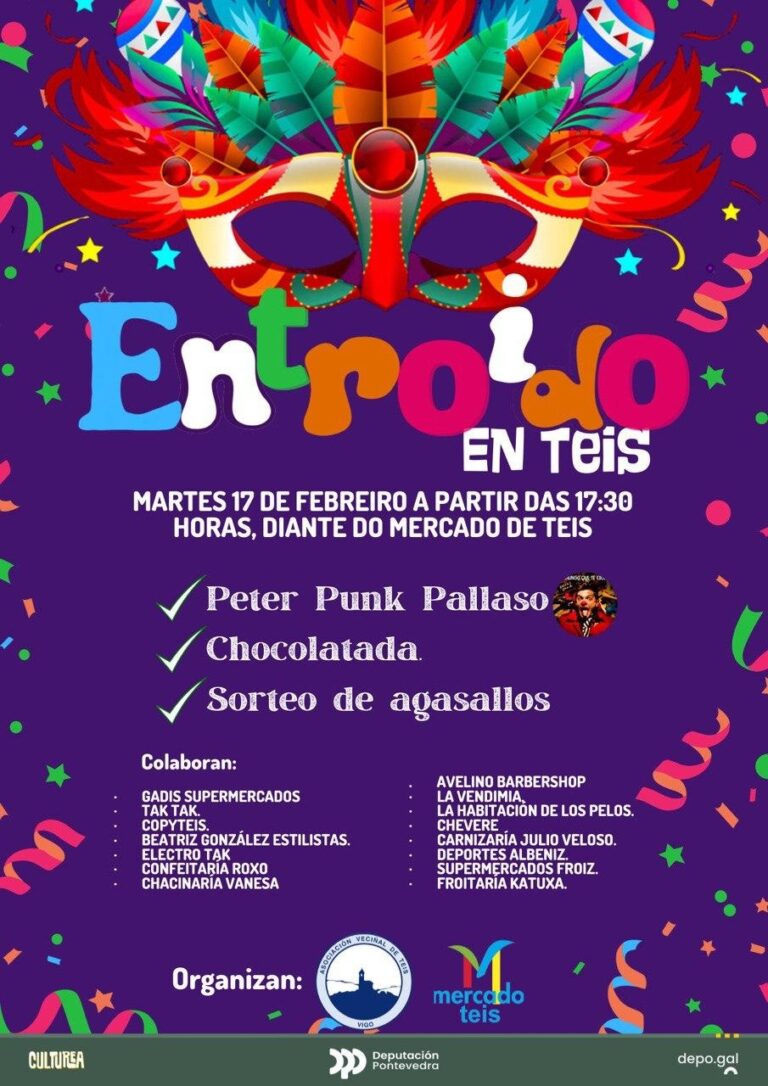 A Asociación Veciñal de Teis e a Asociación de Comerciantes do Mercado de Teis, organizamos hoxe unha actividade de Entroido a partir das 17:30 horas, no espazo peonil diante do mercado. A festa comezará a partir das 17:30 horas, con animación infantil coa actuación do pallaso…