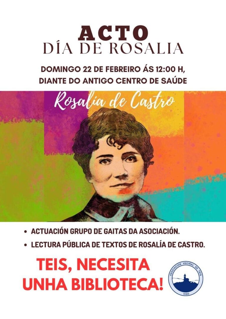 A Asociación Veciñal de Teis, organiza un acto cultural para conmemorar o día de Rosalía de Castro e reivindicar a biblioteca para Teis, este vindeiro domingo 22 de febreiro ás 12:00 horas, diante do edificio do antigo centro de saúde ( rúa Enrique Lorenzo). Neste acto farase a lectura pública…